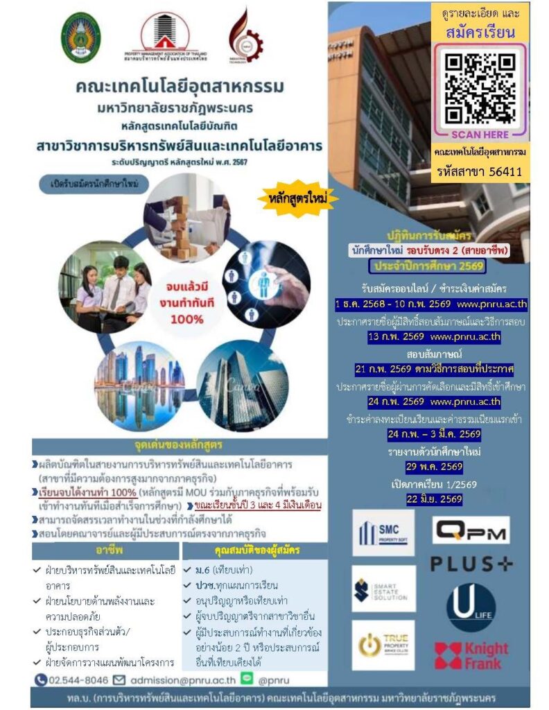 หลักสูตรเทคโนโลยีบัณฑิต สาขาวิชาการบริหารทรัพย์สิน และเทคโนโลยีอาคารpmathailandมีนาคม 13, 2026ไม่มีหมวดหมู่
