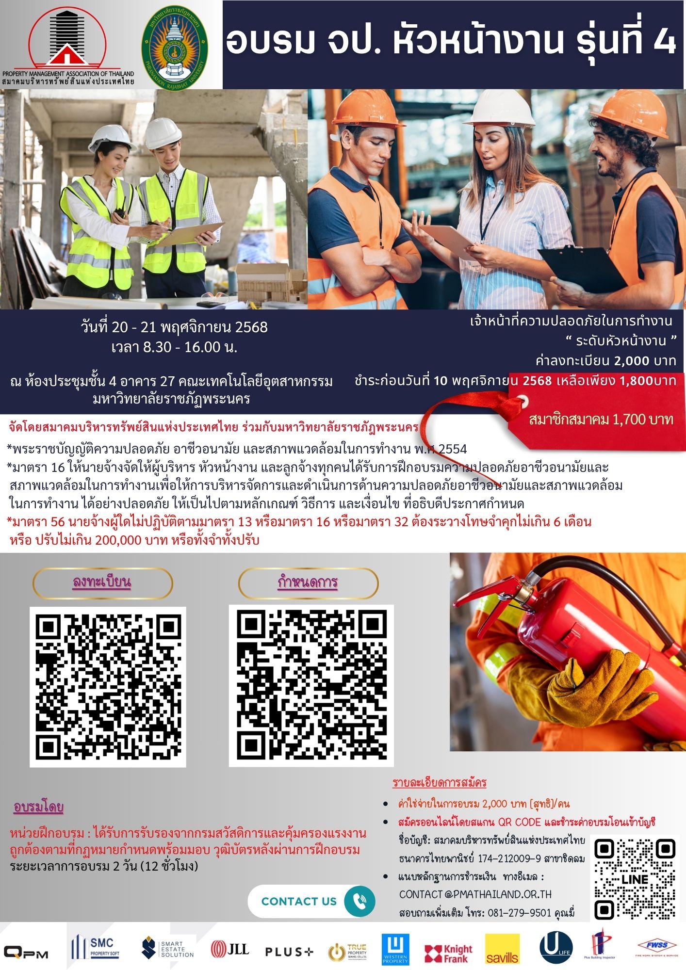 เปิดลงทะเบียน อบรม จป. หัวหน้างาน รุ่นที่ 4 เจ้าหน้าที่ความปลอดภัยในการทำงาน “ระดับหัวหน้างาน”