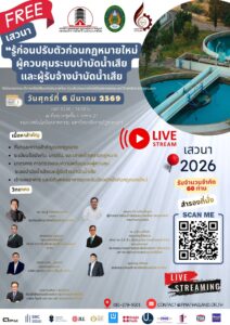 เรียนเชิญร่วมงาน เข้างานฟรี เสวนา “รู้ก่อนปรับตัวก่อนกฎหมายใหม่ ผู้ควบคุมระบบบำบัดน้ำเสีย และผู้รับจ…